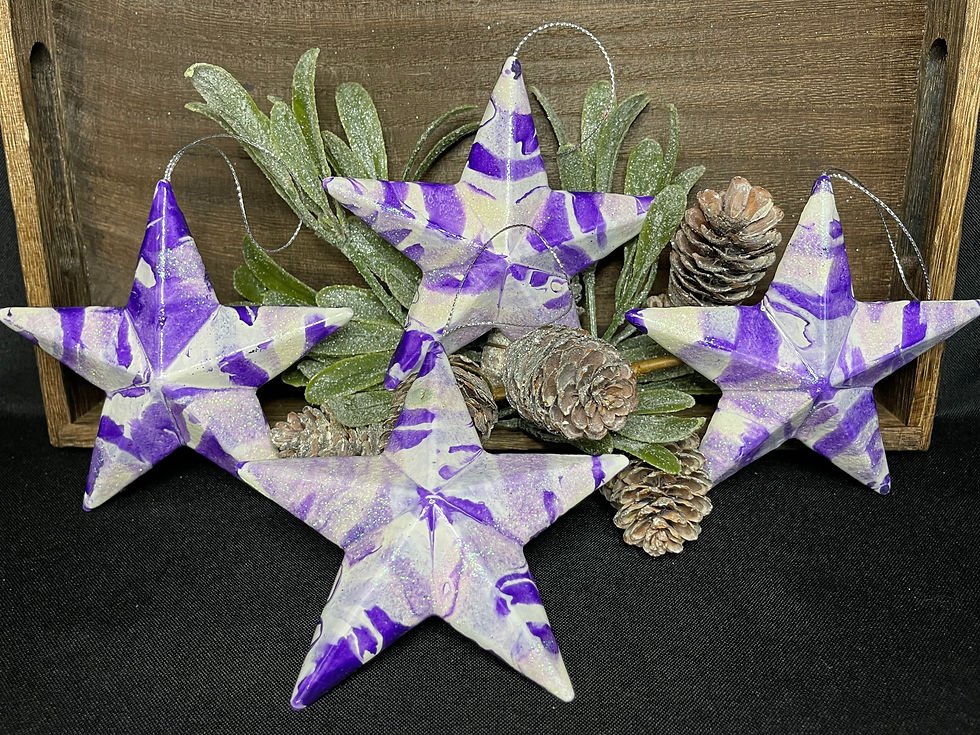 Purple and White Fluid Art Star Ornaments